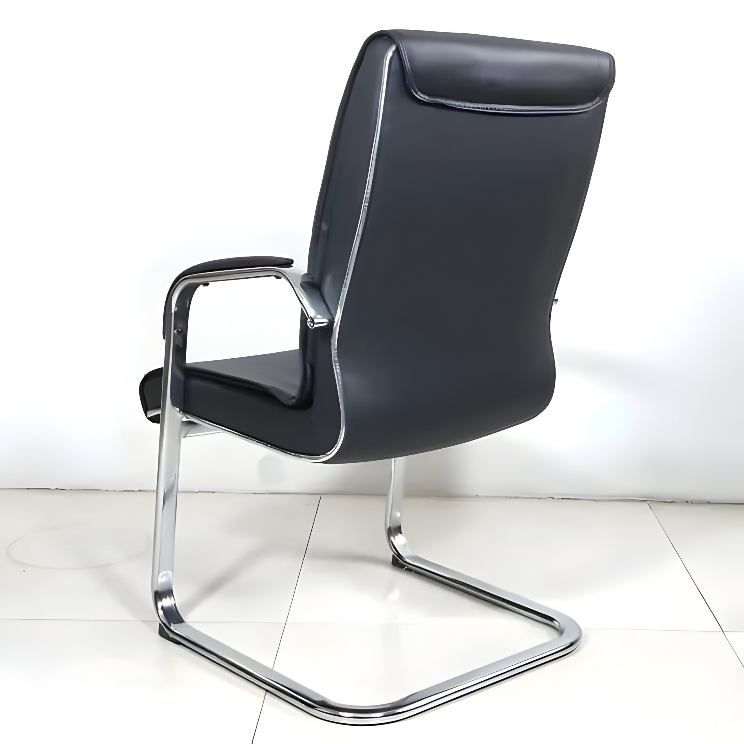 Sleek armrests and a polished chrome cantilever base not only add support but also bring a modern touch to its appearance. The leather is durable and easy to clean, making it perfect for busy settings.